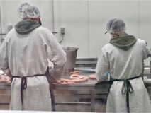 As part of Cal Poly's focus on "learn by doing" a third-year Agriculture Science student led our RAM Group on a tour of the Cal Poly Meat Processing Facility. This full functioning USDA-inspected facility involves students in all stages of meat processing from in-take to packaging. As we toured the facility, we were introduced to each stage of the process. The on-site retail store was also opened early so that we could purchase packaged meats before leaving.